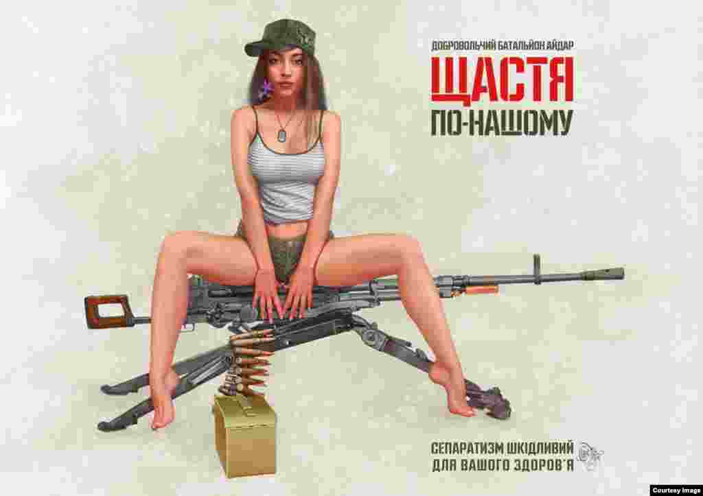 Серия плакатов «Сепаратизм вреден для вашего здоровья» от иллюстратора Святослава Пащука сегодня украшает не только дома украинских солдат на Востоке страны, но и боевую технику. Он работает в стиле пин-ап - популярном в Америке в середине XX века. Изначально проект был скорее развлечением, но впоследствии стал приносить деньги, которые идут на нужды украинской армии. Фотогалерея "Крым.Реалии"