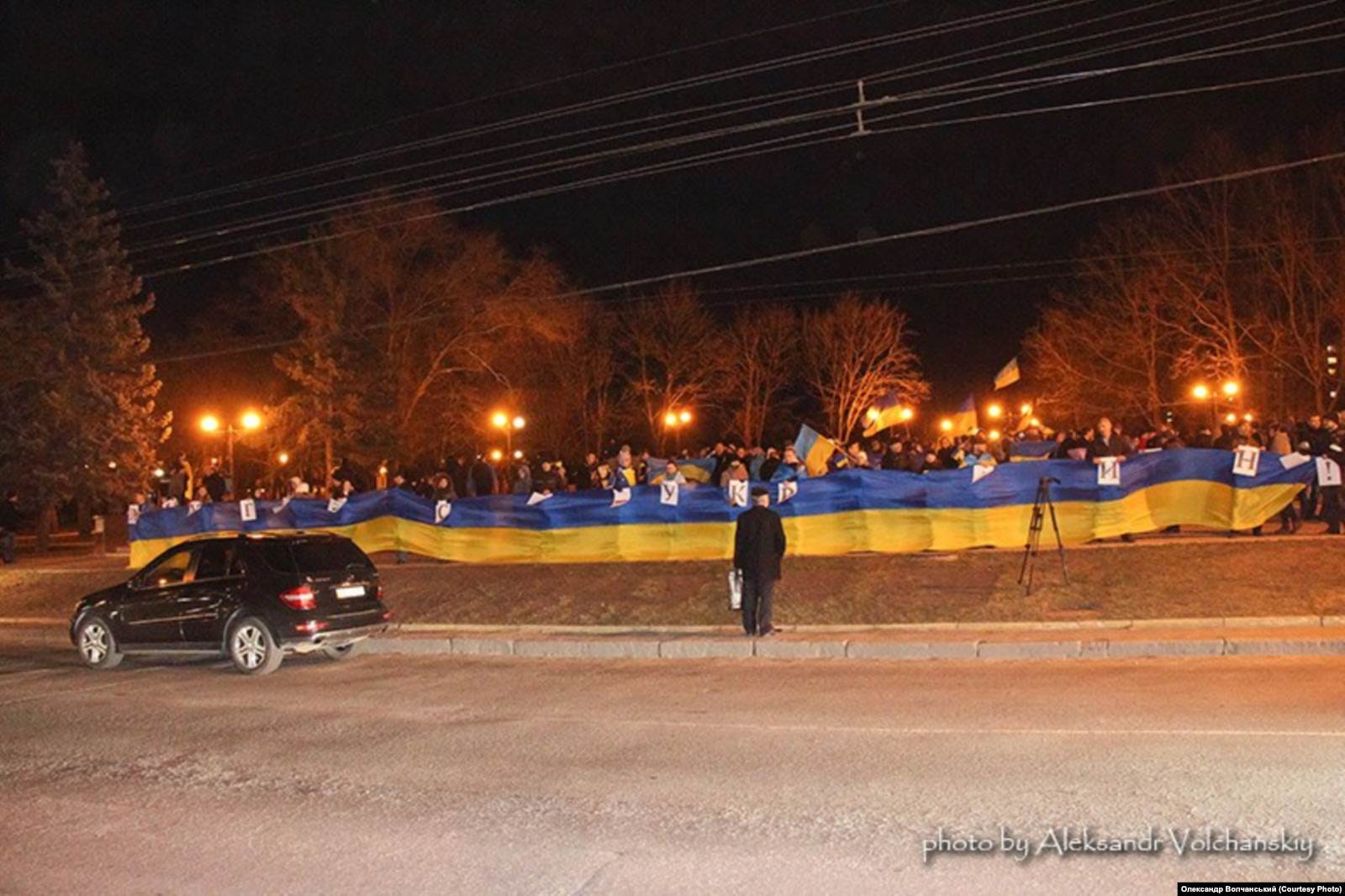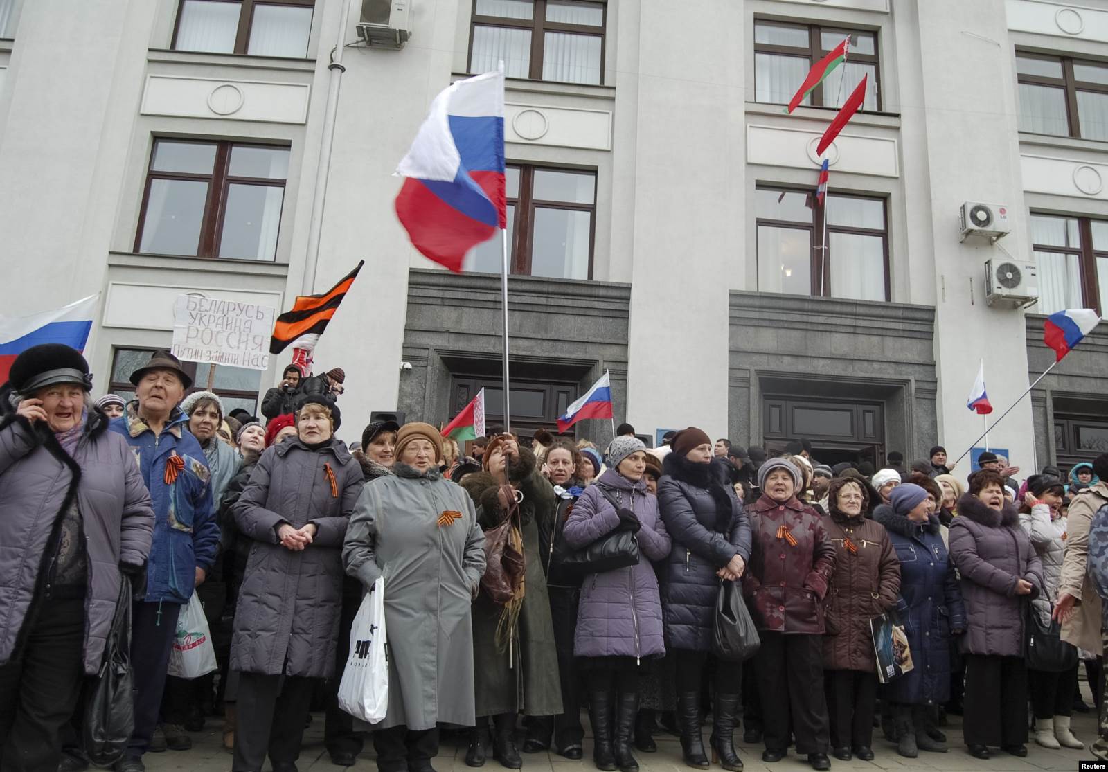 Первого марта на востоке Украины прошли масштабные антиукраинские митинги, которые российские пропагандисты назвали началом "русской весны". Митингующие в Луганске выступали за предоставление русскому языку статуса государственного и называли новую украинскую власть "нелегитимной". Выкрикивая лозунги против "фашистов", они сожгли чучела тогдашнего премьер-министра Арсения Яценюка и депутатов Рады Олега Тягнибока и Виталия Кличко.