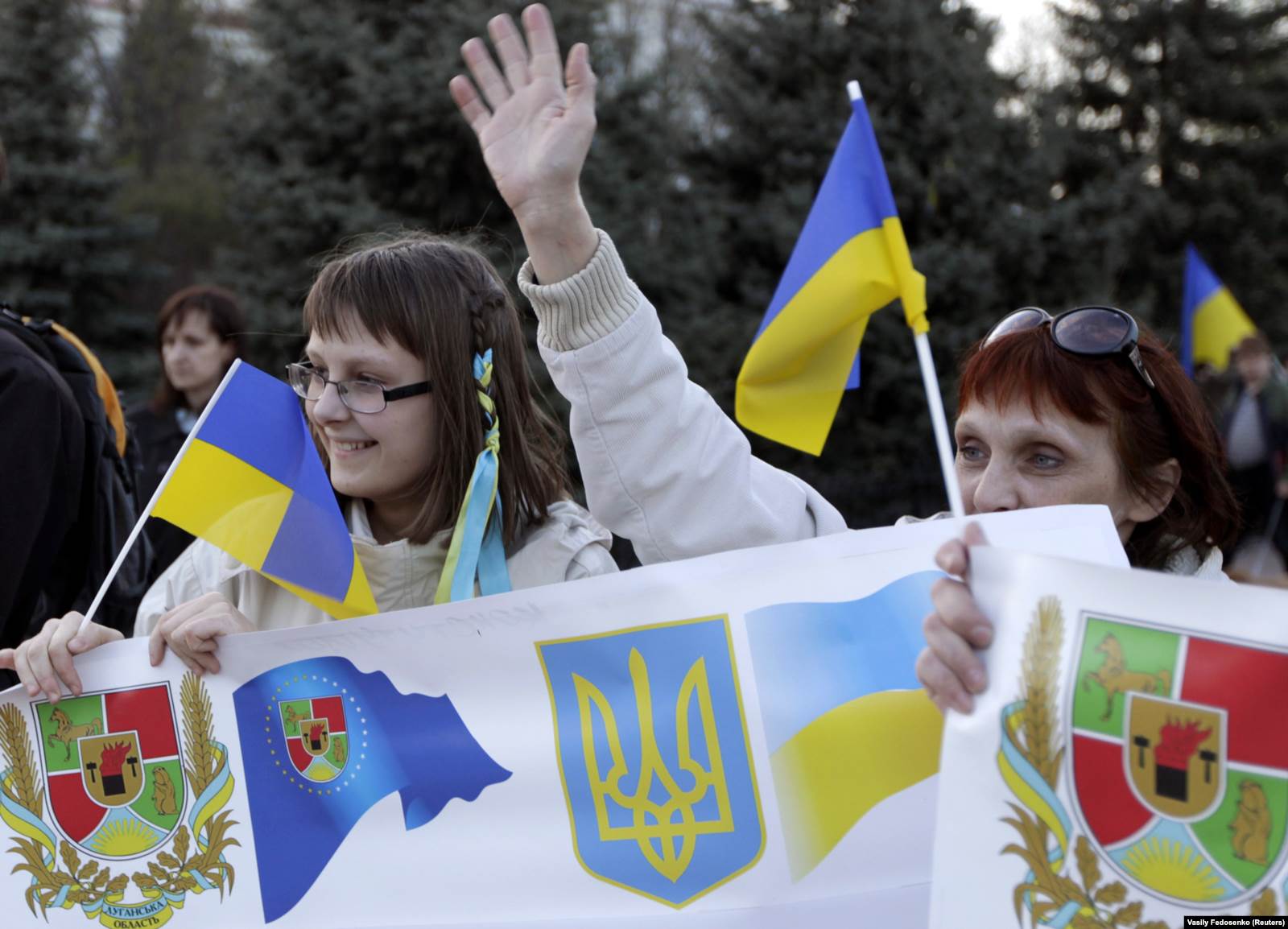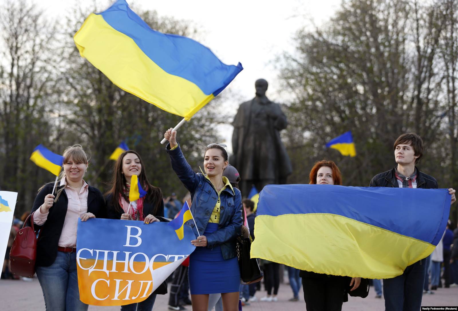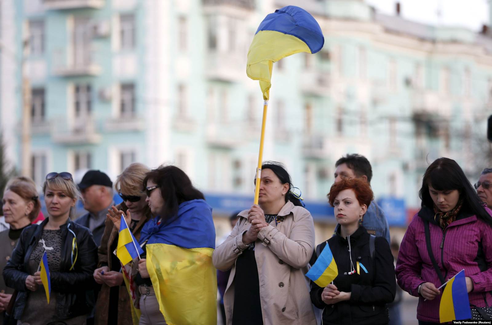 Митинг в Луганске против агрессии России в отношении Украины, 18 апреля 2014 года