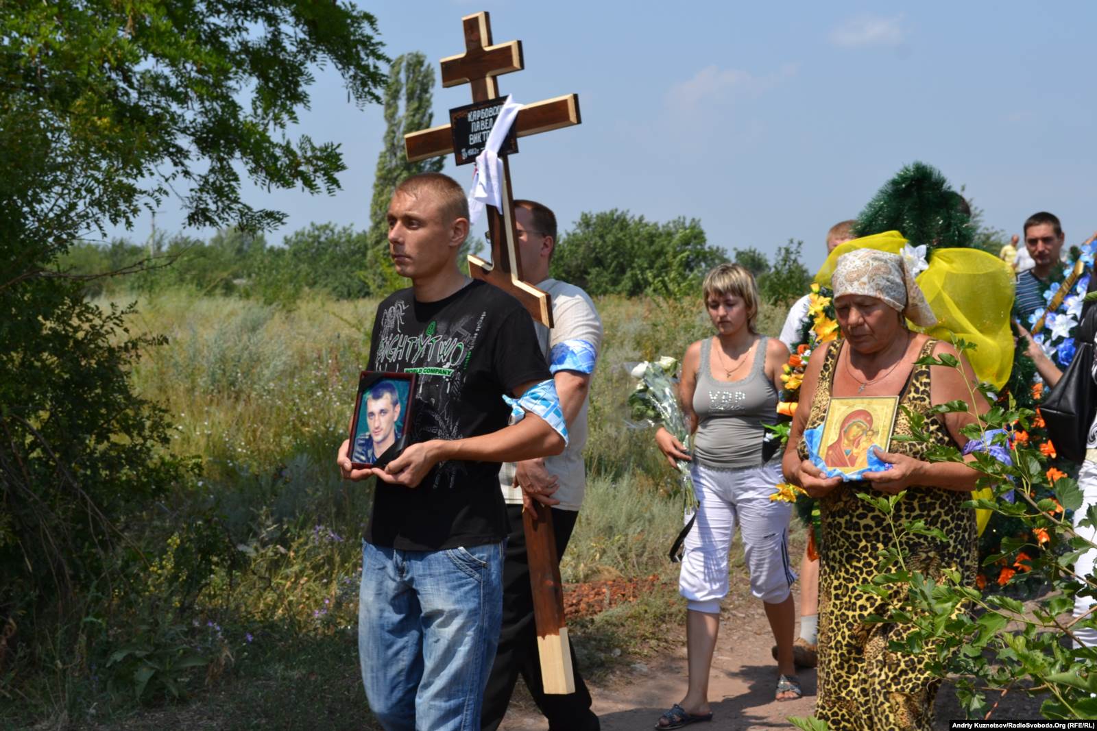 Похороны погибших из-за аварии на шахте "Суходольская-Восточная" в Луганской области, которая произошла 29 июля 2011 года. Тогда погибли 18 шахтеров, девять пропали без вести
