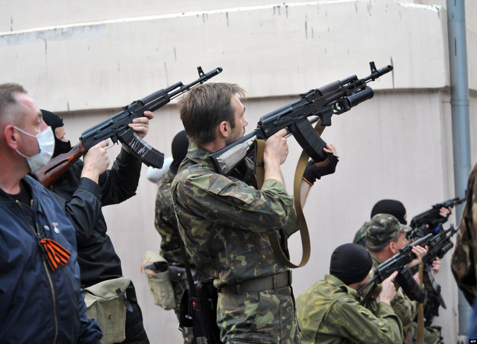 Вооруженные представители пророссийских сил в Луганске, 13 апреля 2014 года. Фото: AFP