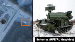 Бывший офицер Воздушных сил Украины, замдиректора компании изготовителя средств РЭБ Анатолий Храпчинский предполалает, что на территории завода установили, скорее всего, российский зенитно-ракетный комлекс "Тор-М2К". Шасси для таких систем, по его словам, производит Минский завод колесных тягачей.