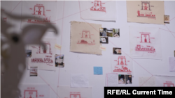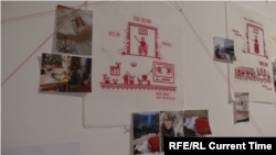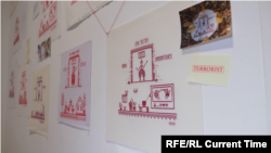 "Если я что-то знаю про историю, я стараюсь это изобразить в этом месте вокруг человека. Здесь, например, человек, у которого есть один ребенок, и он вроде как программист. Также здесь можно увидеть лейблы. Террорист – это люди в тюрьмах, которые получили статус террориста. Эти нитки по сути, собирают эти кейсы. Это значит, что это группа людей, которые были задержаны по одной и той же причине".