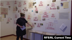 "Как строится схема [вышивки]: это всегда тюрьма, у которой падают стены. Потом – имя, фамилия политического заключенного. И это есть, в общем-то, сам кейс, мы называем дело, по которому человек находится в тюрьме. Здесь название этого дела", – показывает работы художница.