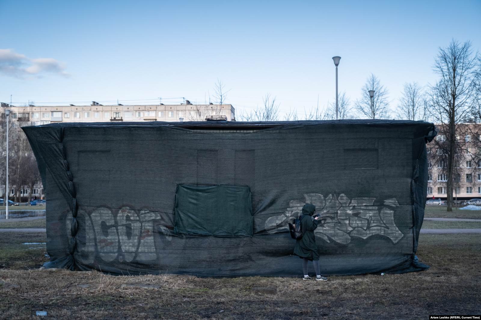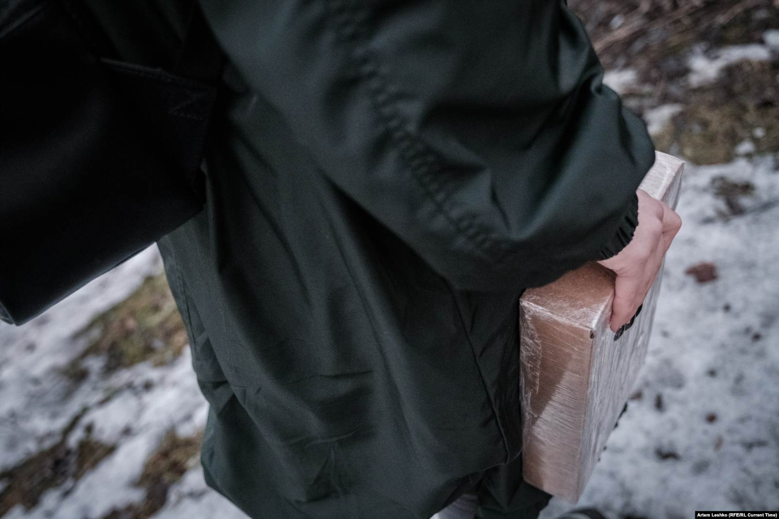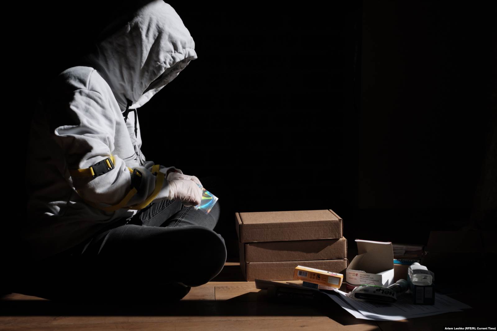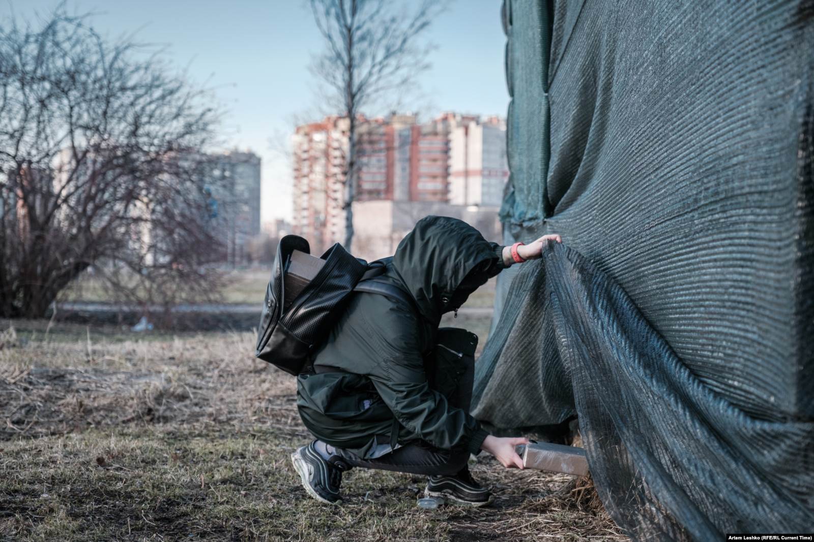 Флэш осматривается, садится на корточки, приподнимает зеленый защитный тент аварийного здания. Быстро делает под ним "закладку": прячет обтянутую полиэтиленом картонную коробку размером 20 на 30 сантиметров. В ней презервативы, лекарства и листовки – импровизированный набор снижения вреда для наркопотребителей.