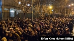 Агентство Irna сообщает, что протестующие несут свечи и цветы в память о погибших пассажирах самолета. О стычках с полицией журналисты агентства не сообщают.