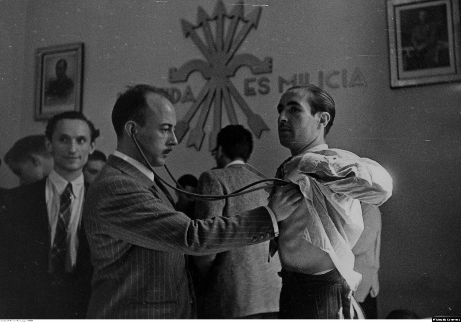 "Это Россия виновата в нашей гражданской войне", "Шанс отомстить за павших", "Наша тысячелетняя культура может быть уничтожена азиатским монстром Сталина", "Это постоянная угроза молодой тоталитарной Европе" – так летом 1941 года выглядели заголовки испанских газет. Буквально через несколько часов после нападения Гитлера на Советский Союз Испанию охватила военная лихорадка. Уже 24 июня 1941 года тысячи молодых мужчин (средний возраст – от 20 до 28 лет), среди которых было много студентов и членов правящей фашистской партии "Испанская фаланга", стояли в очередях, чтобы записаться в ряды добровольческой дивизии и ехать воевать против СССР на стороне "бдительной Германии", как называла ее пресса. "Вся европейская молодежь с присущей ей особенной чуткостью просит у Германии место в рядах для борьбы с коммунизмом", – убеждала пропаганда с газетных страниц, по радио и с экранов кинотеатров.