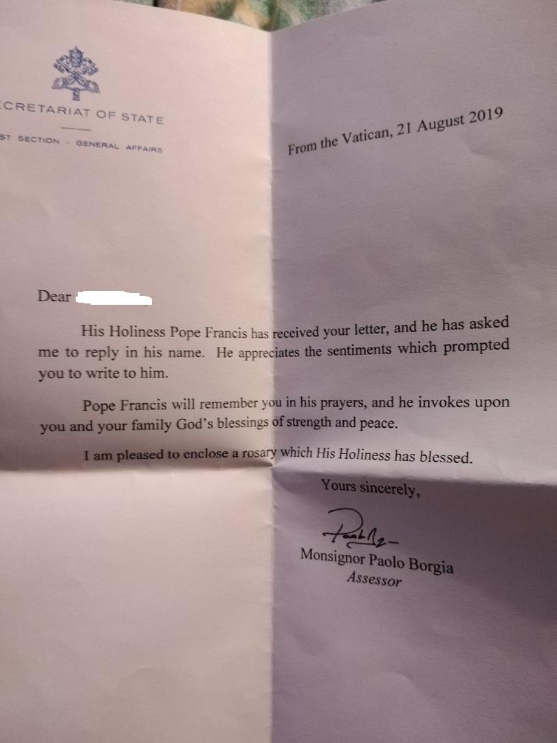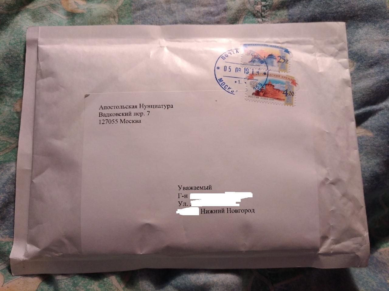 Летом школьник отправил письмо в Ватикан, а в начале осени обнаружил в почтовом ящике конверт из апостольской нунциатуры, предназначенный ему: «Я прямо прыгал от счастья и любопытства в подъезде!» — описывал свои чувства подросток.