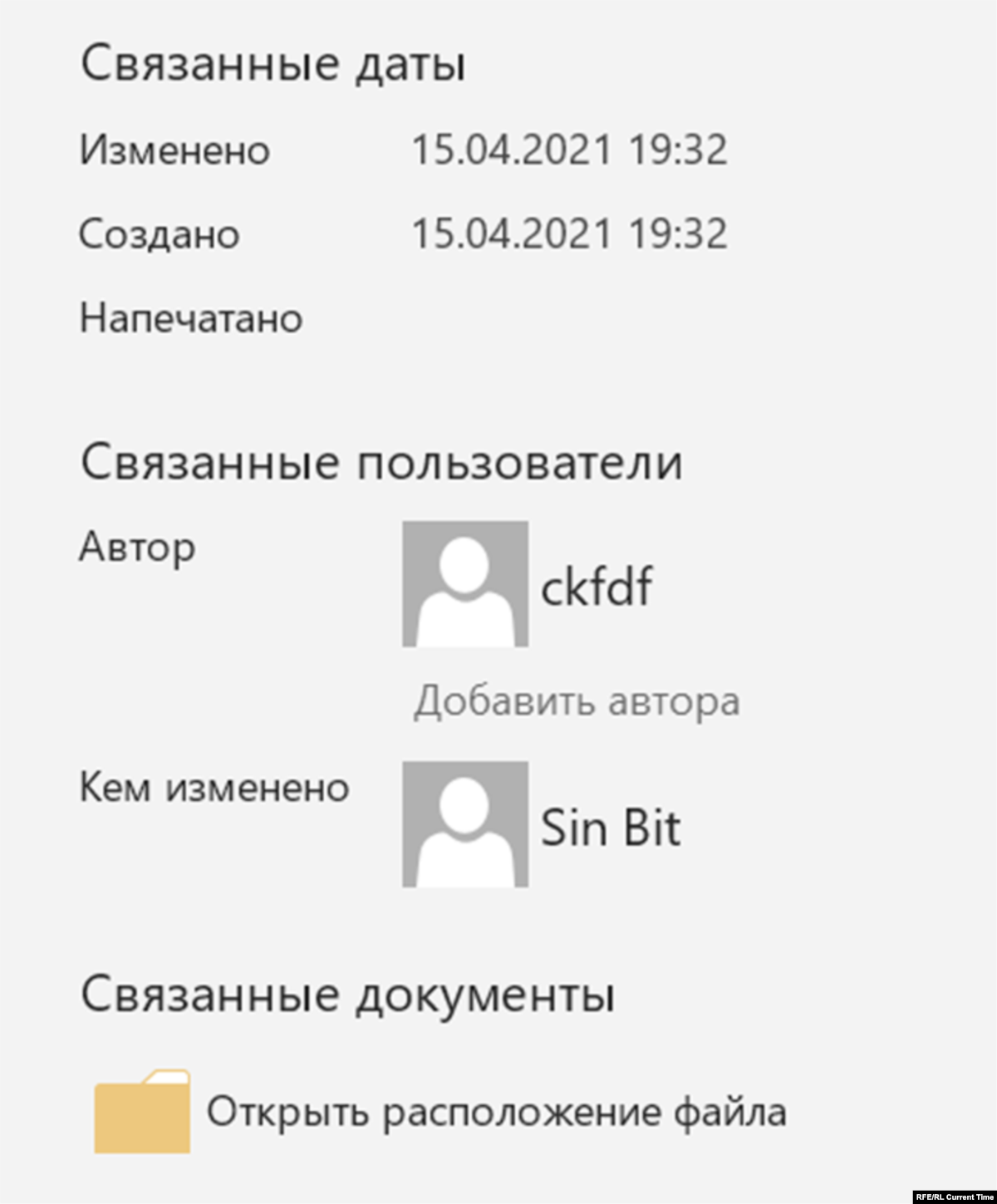 На этом связь прервалась. Корреспондент написал Вячеславу в телеграм и попросил прислать скриншот свойств любого офисного файла. Тот откликнулся – в графе "автор" у него значился "пользователь Microsoft Office".