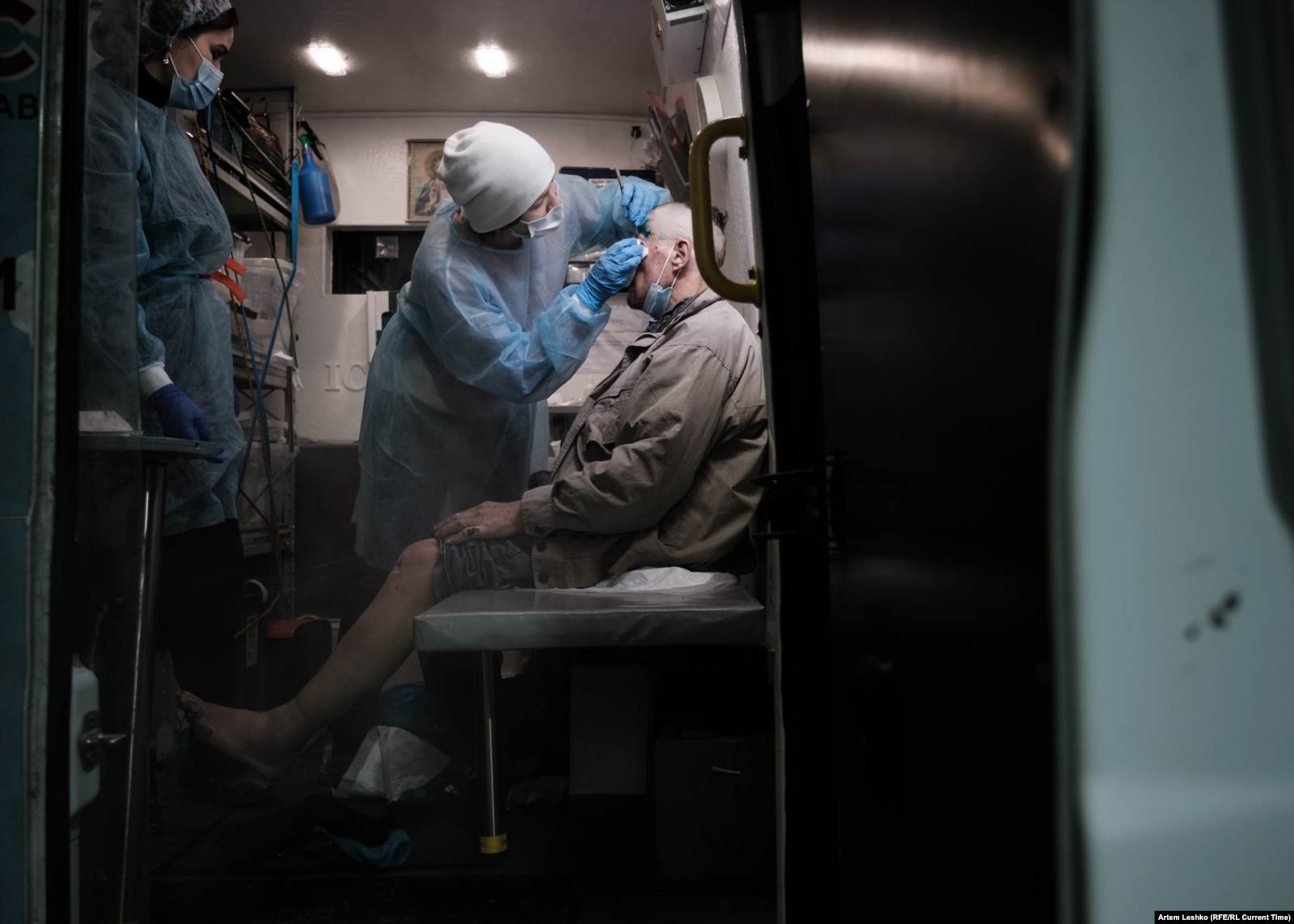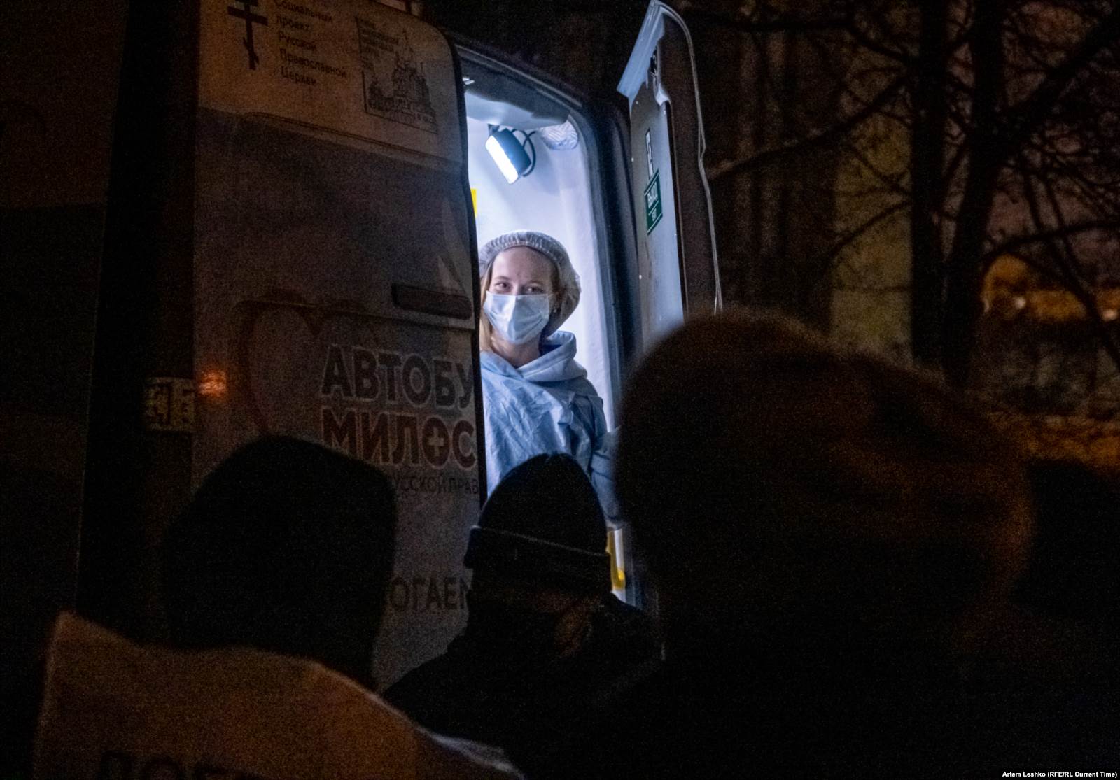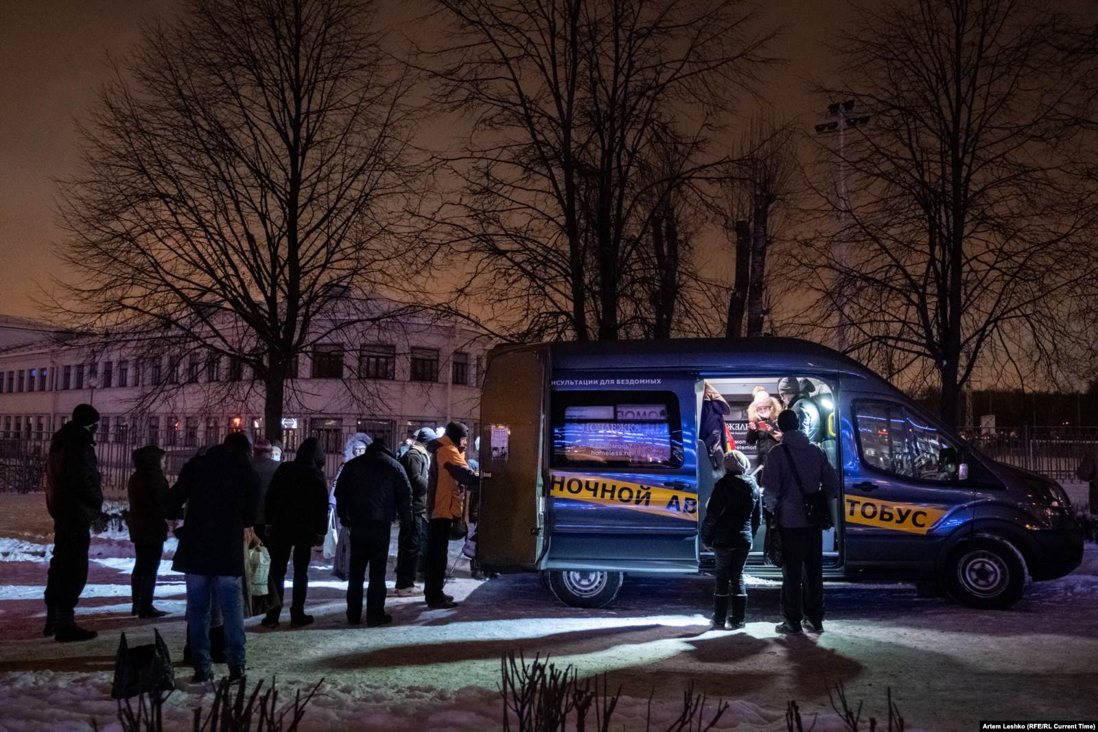 "Ночной автобус". В пассажирском отсеке врачи-волонтеры ведут медицинский прием
