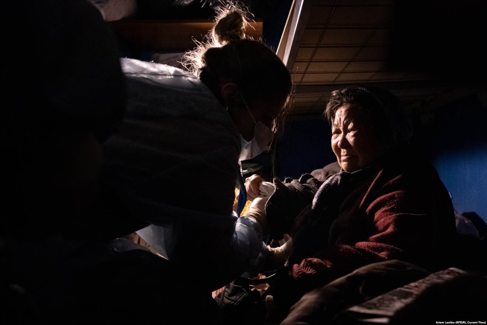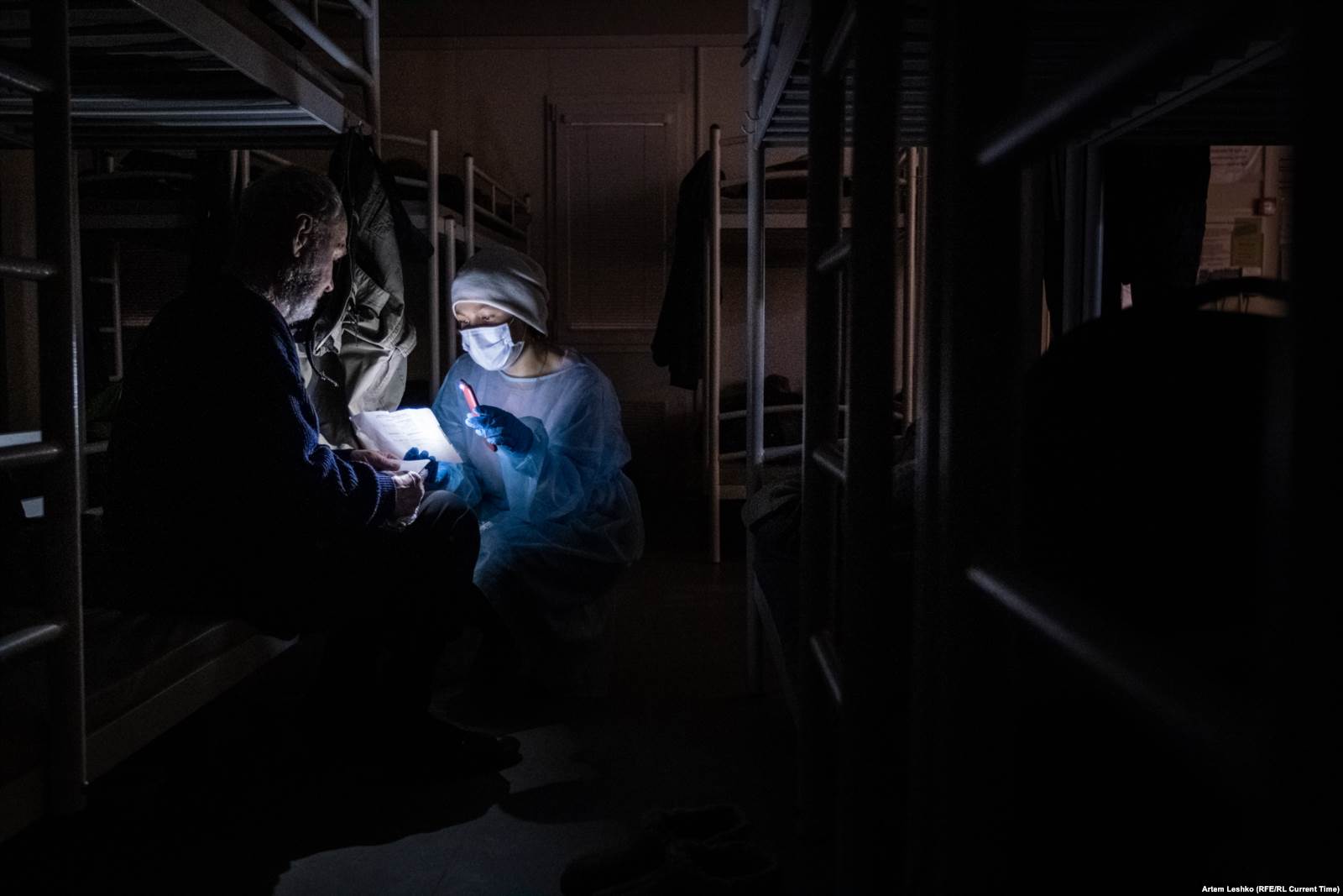 Анна Матвеева осматривает пациента и изучает выписки из больниц после отбоя в приюте