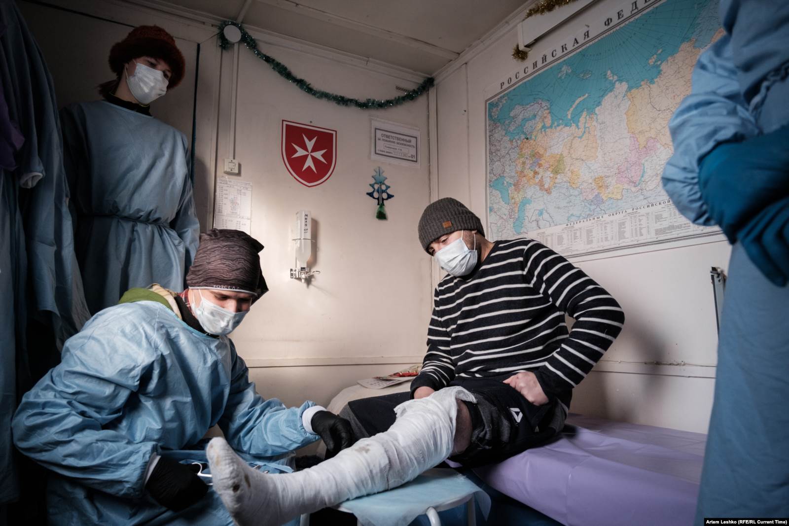 Андрей на перевязке у врачей в приюте Мальтийской службы помощи