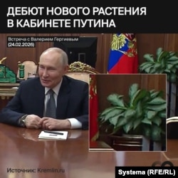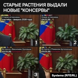 В феврале "Система" показала, что Путин в течение 11 дней не появлялся перед камерами. Это удалось установить по состоянию аглаонем – комнатных растений, стоящих по углам кабинета. С сентября 2025 года на видео кремлевской пресс-службы – одни и те же горшки с двумя аглаонемами. Со временем листья на правом (если смотреть на Путина) растении начали желтеть и подсыхать, и по их состоянию можно было выстроить последовательность съемок.