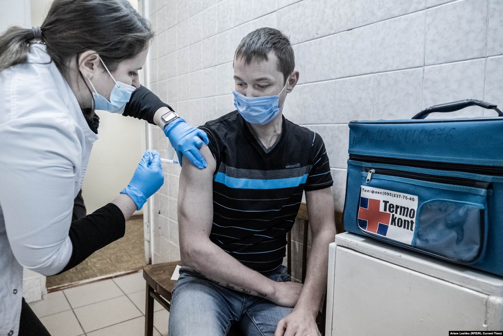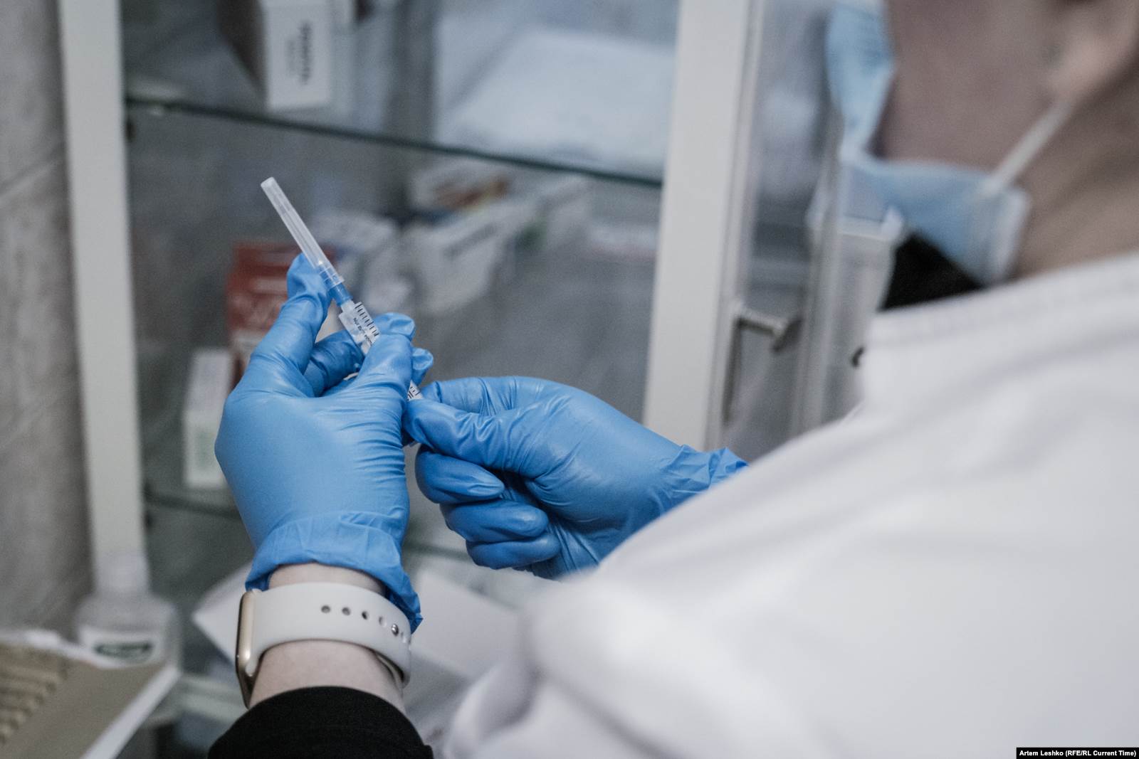 В кабинете терапевт проводит стандартный осмотр, измеряет давление и температуру, спрашивает про наличие хронических заболеваний. Если человек получает допуск, врач предупреждает о возможных реакциях на вакцину – боли в месте укола и повышении температуры. Прививают "Спутником Лайт".
