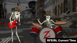 Анимированный клип на песню Anthem of the Doomed был создан мультипликатором Олегом Куваевым. В нем показана Россия, в которой живут зомби и орки на фоне буквы Z и георгиевских ленточек, символов российской агрессии в Украине. Орки и зомби смотрят телевизоры, в которых узнаются образы российских пропагандистов — Дмитрия Киселева и Маргариты Симоньян. Когда пропагандисты открывают рты, из них вылетают кости и черепа: